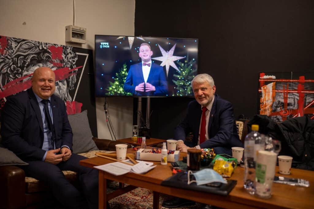 To fornøyde generalsekretærer. Hermansen og Høybråten i studio.