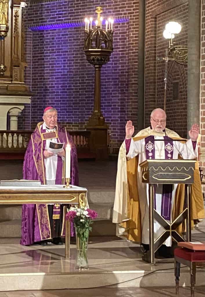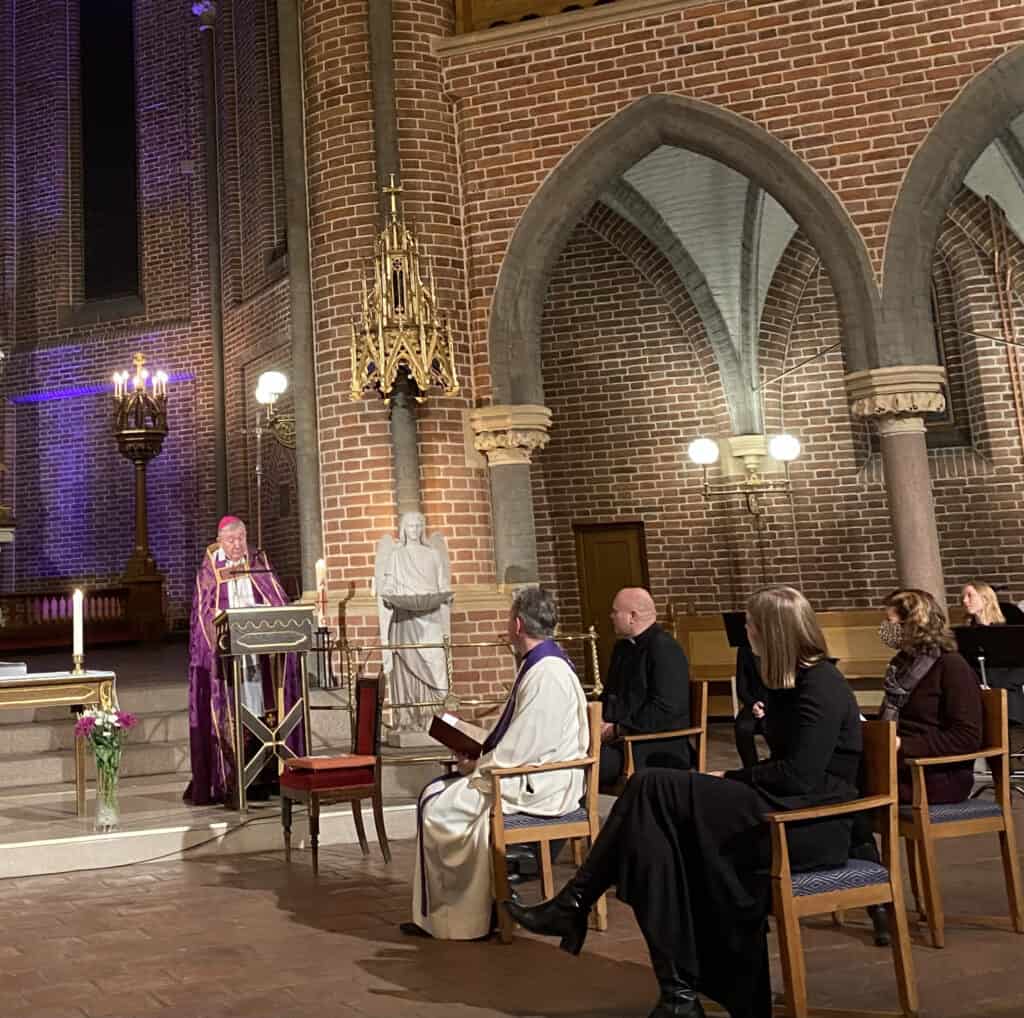 Biskop Bernt Eidsvig i Den katolske kirke startet sin preken med å uttrykke å respekt og beundring for Maria Ressa og Dmitrij Muratov for deres innsats for ytringsfriheten.