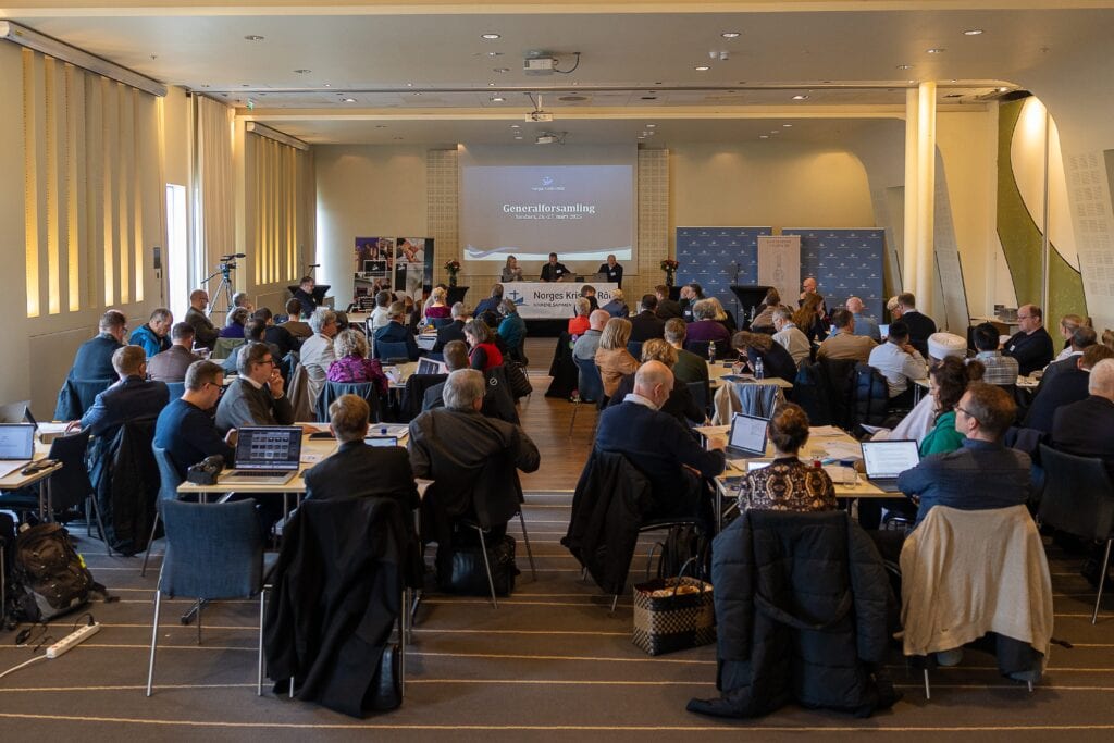 «Delegater, observatører, kirkeledere, gjester … hjertelig velkommen!» Åpner generalsekretær Henrik Erhard Hermansen generalforsamlingen i Norges Kristne Råd 2025.