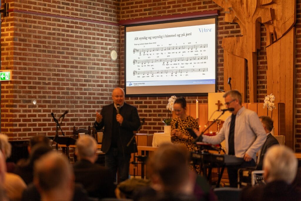 Nyskrevet salme «Alt synlig og usynlig i himmel og på jord» av salmedikter Sindre Skeie ble introdusert og sunget under åpningsgudstjenesten. Ingen av deltakerne på generalforsamlingen skal nok kunne dra herfra uten å ha den på hjernen.