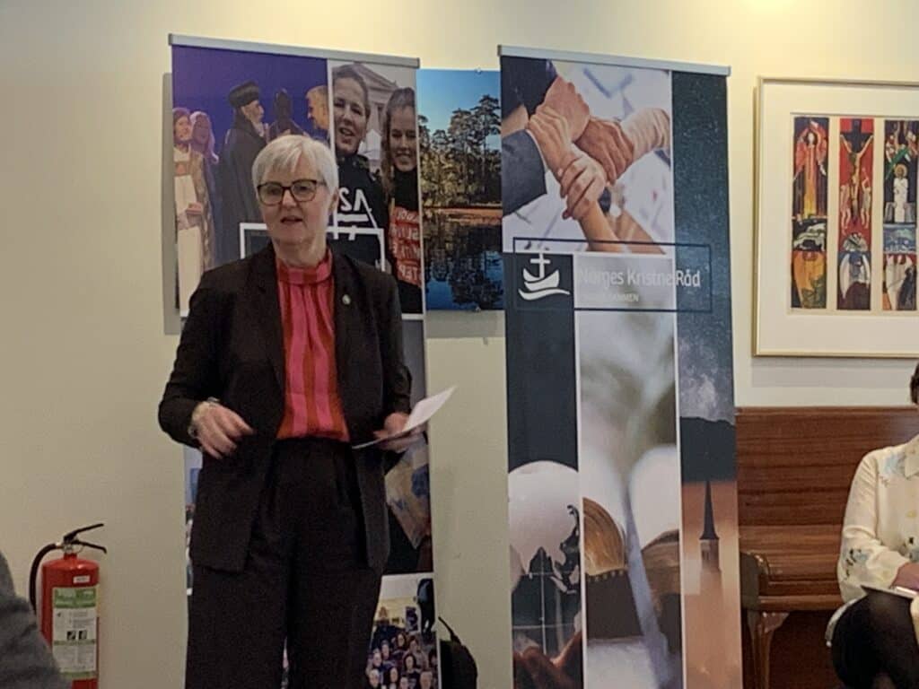 Hun takket også kirkene for at de er med å bygge samfunnet, for den innsatsen som gjøres både for barnefamilier, barn og unge, eldre og enslige. Og hun anbefalte trossamfunnene å fortelle om hva de gjør og vise den positive effekten all virksomheten har og den frivillige innsatsen som ligger i det.