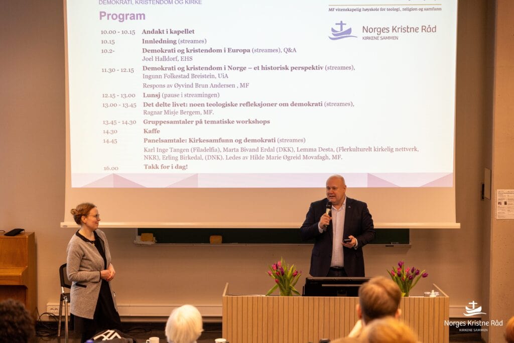 INNLEDET: Dorte Lund Kappelgaard, MF og Erhard Hermansen, generalsekretær i Norges Kristne Råd