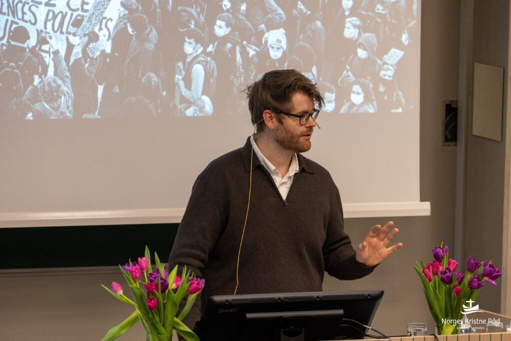 – Vi finner det i krigen mot Ukraina, i Trumps kampanje: Nesten alle konflikter har en religiøs eller åndelig dimensjon. Hva er det vi ser i USA? Representerer den tabloide retorikken vi ser her kristendommen? Eller brukes den bare for retorikkens skyld? spurte Halldorf og pekte på de tydelige koblingene mellom autoritær høyrepopulisme og kristendom.