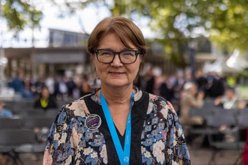 – Det fineste med å være her på generalforsamlingen er alle møtene med folk fra hele verden. Å treffe mennesker som lever under helt andre kår og tenker ganske annerledes enn meg, er både inspirerende og utfordrende. En ser seg selv og kirka og samfunnet i Norge med nye briller, samtidig som en lærer mye om andre måter å leve på, sier Berit Hagen Agøy, styreleder i Norges Kristne Råd og internasjonal direktør i Den norske kirke.