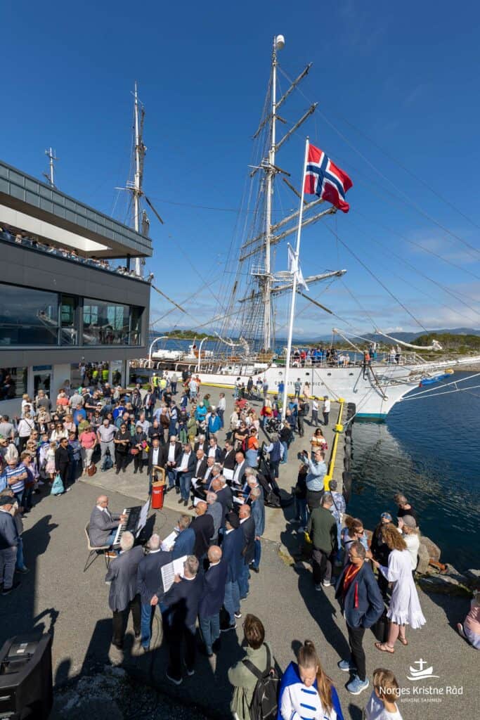 Like før pressetreffet ble det holdt velkomstseremoni for seilskuten Christian Radich i Mosterhamn og hvor pilegrimene som har seilet med skuta fra Oslo til Moster ble ønsket velkommen. Ordfører Morten Helland (KrF) holdt tale til de frammøtte før memorandumet ble overrakt fra Erhard Hermansen og Håkon Georg Moe et innrammet eksemplar til museet ved Moster Amfi.