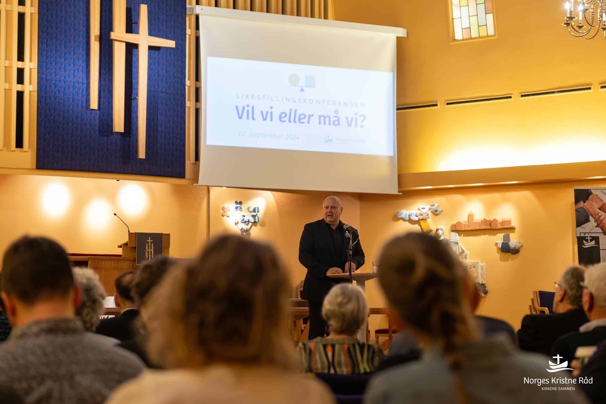 Norges Kristne Råd arrangerte likestillingskonferansen den 12. september 2024 med temaet «Likestilling – Vil vi eller må vi?». Konferansen som ble holdt i Metodistkirkens lokaler i Oslo sentrum, utforsket skjæringspunktet mellom teologi, trosfrihet, statlige krav og behovet for endring i kirkene. Målet var å belyse utfordringer og muligheter knyttet til kjønnsbalanse og trosfrihet, og innledere fra ulike bakgrunner delte innsikter om hvordan kirkesamfunn kan tilrettelegge for økt likestilling.