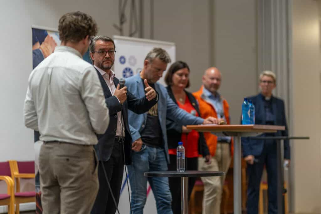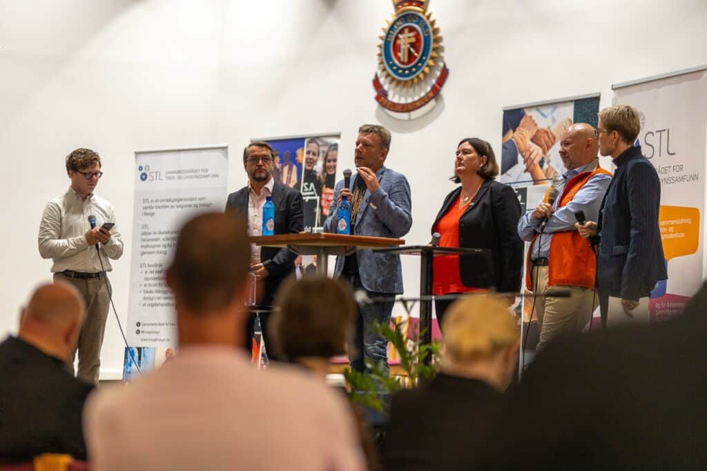 Deretter var det tid for paneldebatt, ledet av Morten Marius Larsen, nyhetsleder på religion i Vårt Land. I panelet satt Vebjørn Selbekk, sjefredaktør i Dagen, Ingrid Rosendof Joys, generalsekretær i STL, Trond Enger, generalsekretær i Human-Etisk Forbund, Senaid Koblica, leder i Muslimsk dialognettverk og Jorunn Raddum, prost i Den norske kirke.