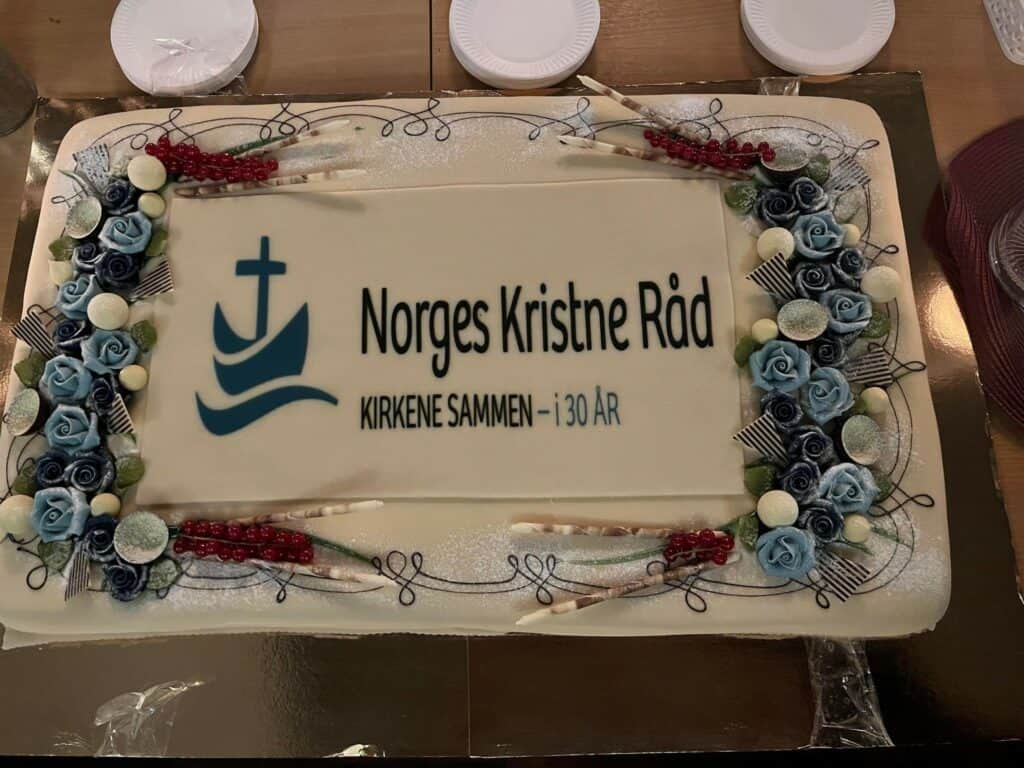 Første desember arrangerte vi Global adventsfeiring i Trefoldighet • freds- og forsoningskirken i Oslo. Dette markerte samtidig begynnelsen på feiringen av Norges Kristne Råds 30-årsjubileum. 30 år med viktig arbeid for økumenisk samarbeid i Norge – det ble selvsagt feiret med stor kake!