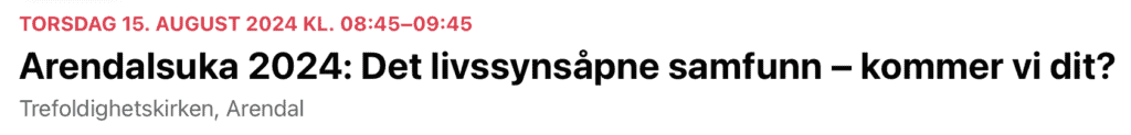 Norges Kristne Råd deltar som vanlig med dagsaktuelle, varierte og spennende arrangementer på Arendalsuka. Under kan du lese oversikten over alle våre arrangement. Her ligger også linker til streaming av arrangementene!
