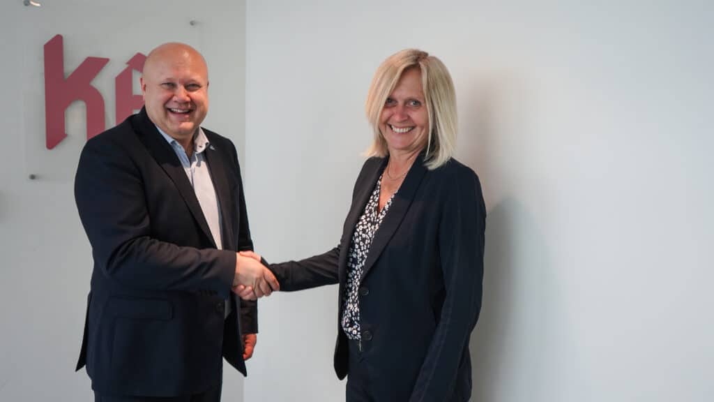 MEDLEM I KA: Administrerende direktør Marit Halvorsen Hougsnæs ønsker Hermansen og Norges Kristne Råd hjertelig velkommen i KA. Foto: Kristelig pressekontor/Trygve W. Jordheim